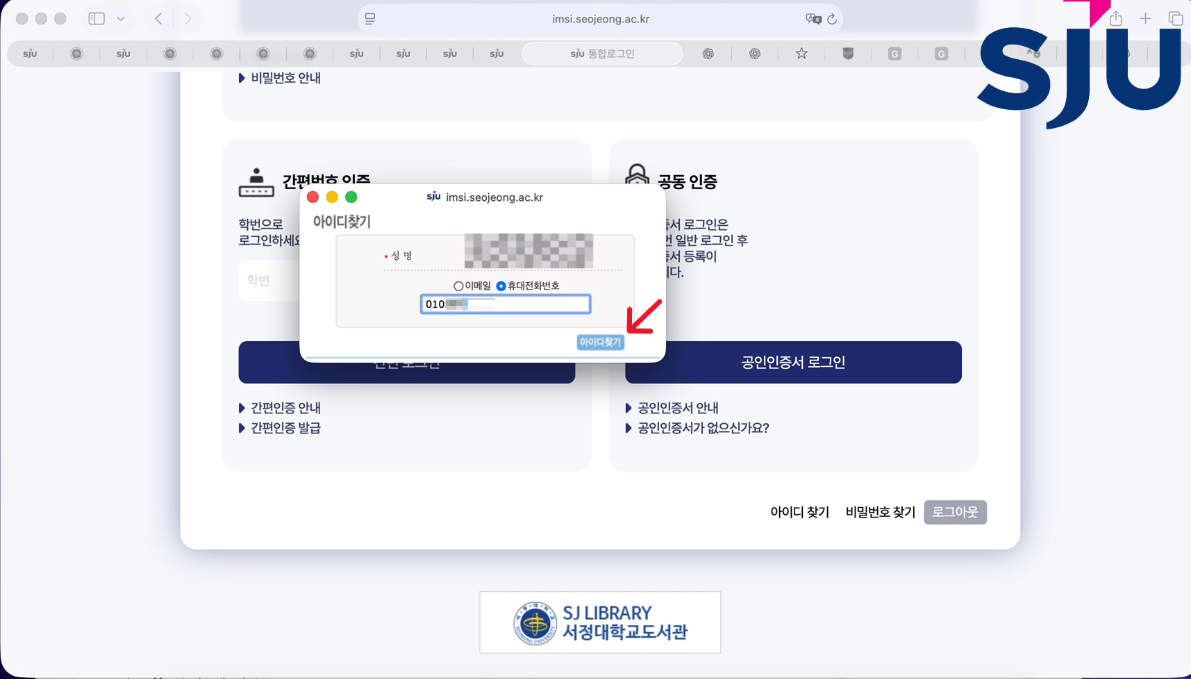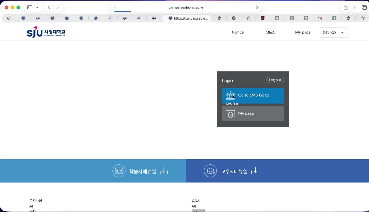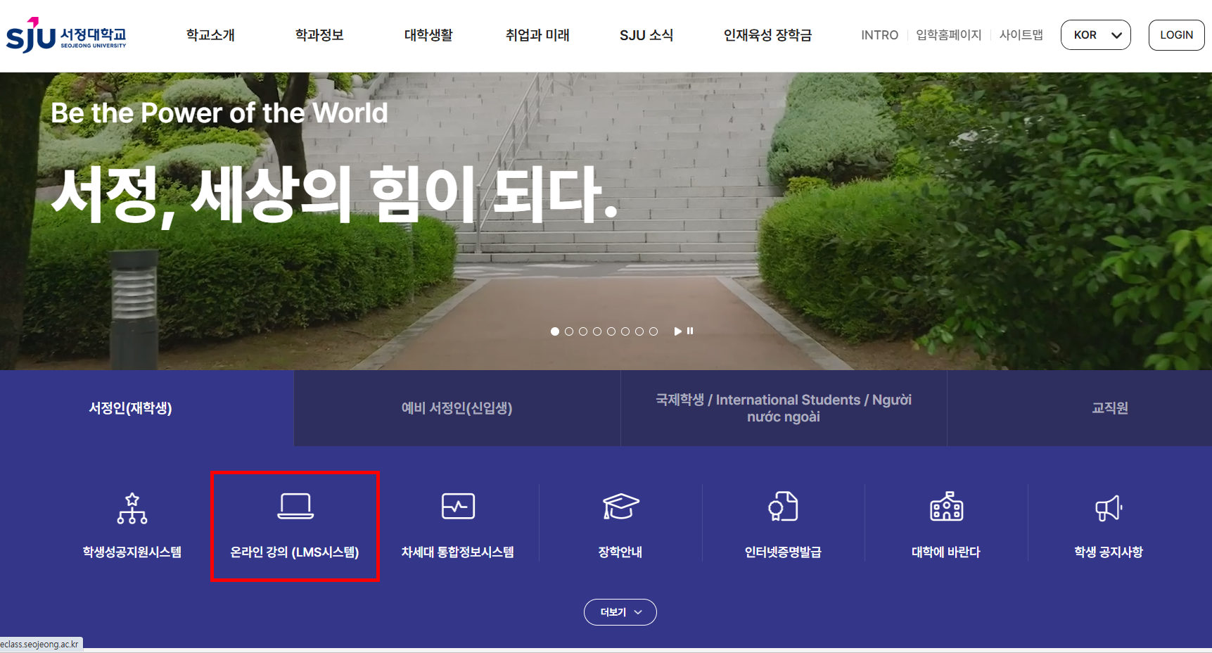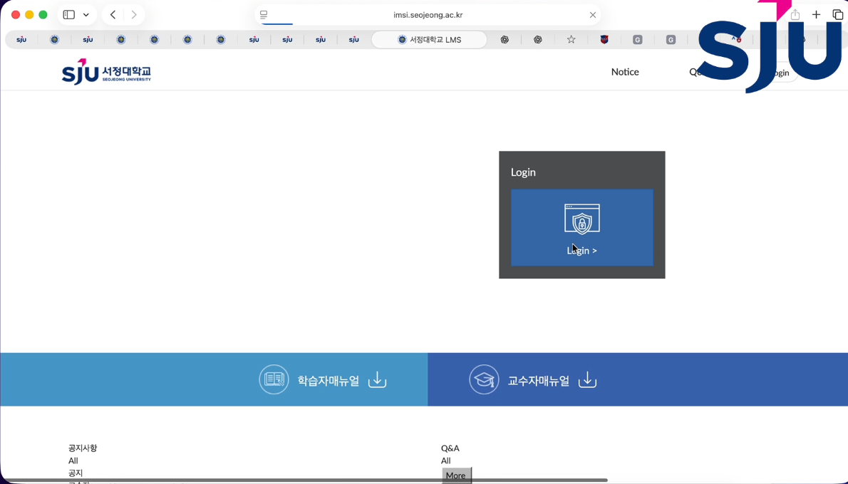 ① Go to the Seojeong University homepage and move to the LMS page > Click Integrated Login.