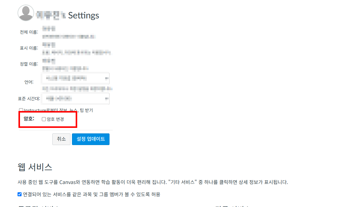 > '암호변경'Click