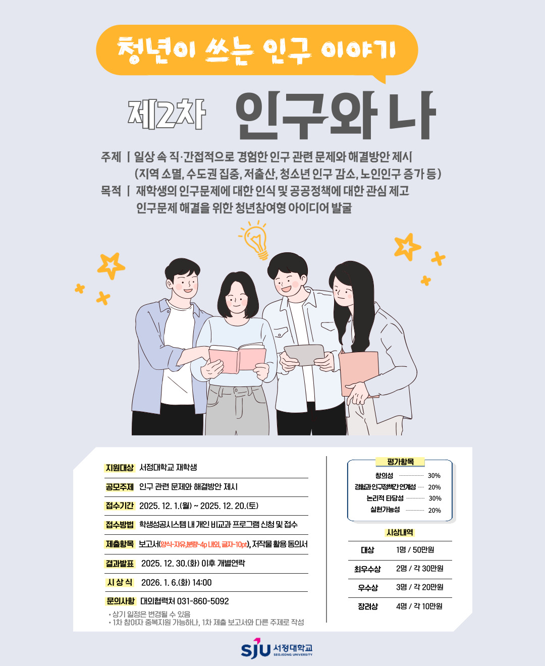 [행사일정] 제2차 인구와 나 '청년이 쓰는 인구 이야기' 공모전 개최 N
