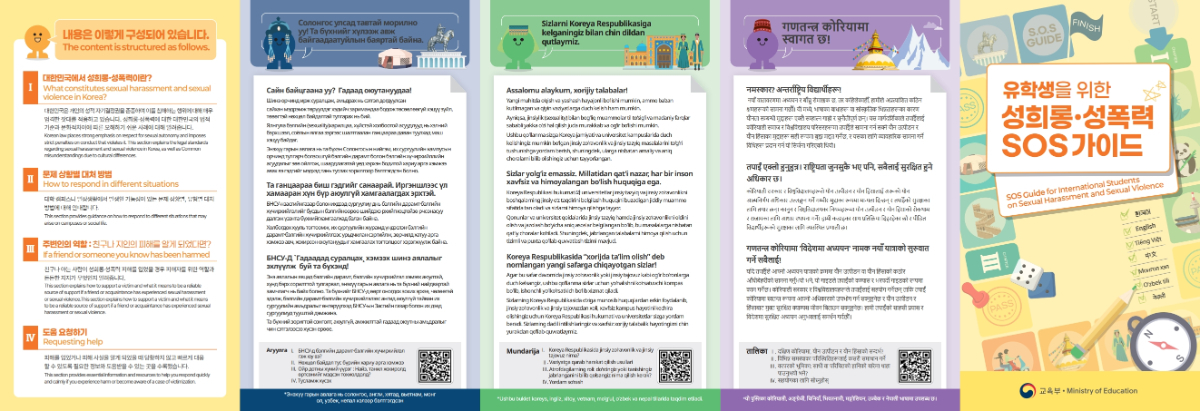 본교에 재학 중인 외국인 유학생 여러분의 안전하고 건강한 캠퍼스 생활을 지원하기 위해 「성희롱·성폭력 SOS 가이드」를 안내드립니다.