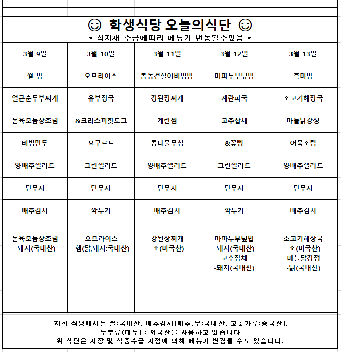[공지] 3월2주차 학생식당 주간식단 안내입니다. N
