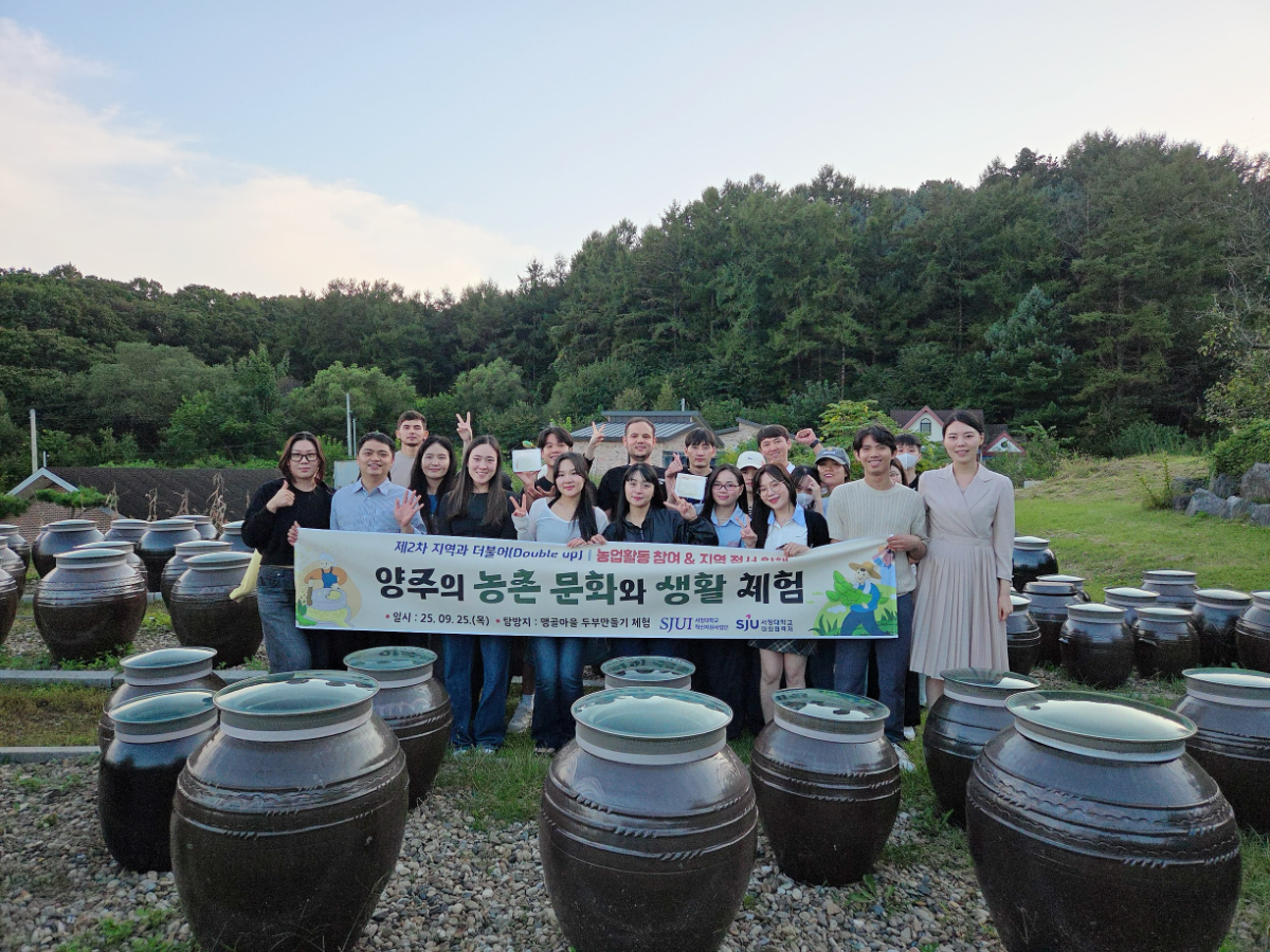 서정대학교 호텔관광과는 전문대학 혁신지원사업의 일환으로, 9월 25일(목) 양주시 맹골마을에서 ‘지역과더불어(Double up) 프로그램(양주의 농촌 문화와 생활 체험)’에 참여했습니다. 이번 프로그램은 혁신지원사업단이 주최하고 대외협력처가 주관하였으며, 양주의 장류 문화 및 두부 만들기 등을 체험할 수 있는 활동이었습니다.