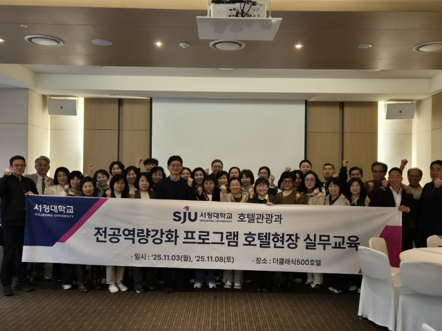 서정대학교 호텔관광과는 전문대학 혁신지원사업의 일환으로, 11월 3일(월), 11월 8일(토) 더클래식500 펜타즈호텔에서 ‘2학기 전공역량강화 호텔현장 실무교육’을 진행했습니다. 이번 프로그램은 혁신지원사업단이 주최하고 교수학습지원센터와 호텔관광과가 주관하였으며, 호텔 객실 및 주요 부대시설 투어, 식음료 및 테이블 매너 등을 체험할 수 있는 활동이었습니다.